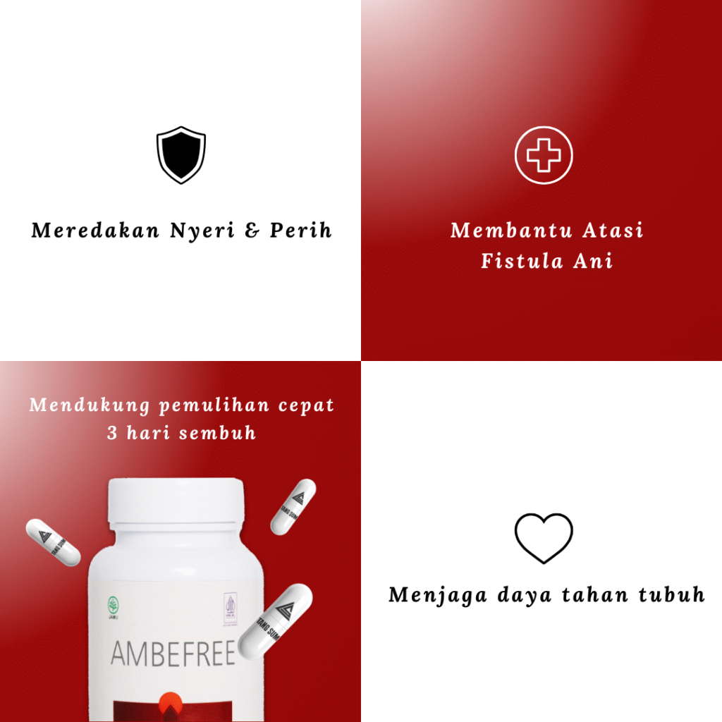 Ambeefree adalah suplemen herbal untuk membantu meredakan gejala Fistula Ani secara alami. Produk ini dirancang untuk membantu mengurangi rasa nyeri, bengkak, dan ketidaknyamanan saat BAB.