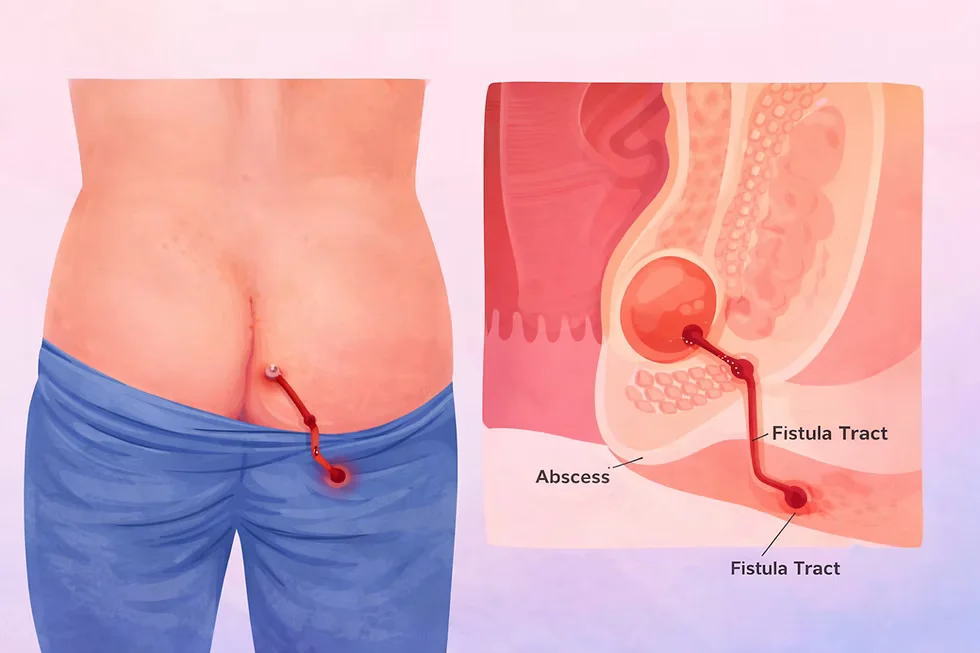 Fistula ani biasanya muncul akibat infeksi atau abses yang tidak sembuh sempurna.